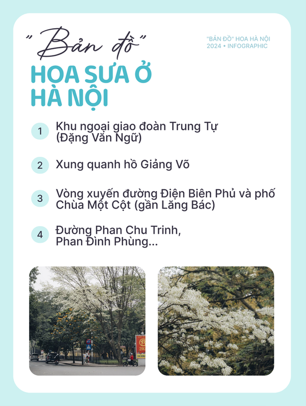 Hoa sưa có năm nở sớm, có năm nở muộn. Nhưng chỉ cần nó nở thôi, là cả Hà Nội lại rần rần. Bởi ở mỗi nơi có hoa sưa, cả khung trời dường như trở nên trắng tinh khôi, ngập chìm trong cảm giác trong veo, lãng mạn và dễ chịu vô cùng.