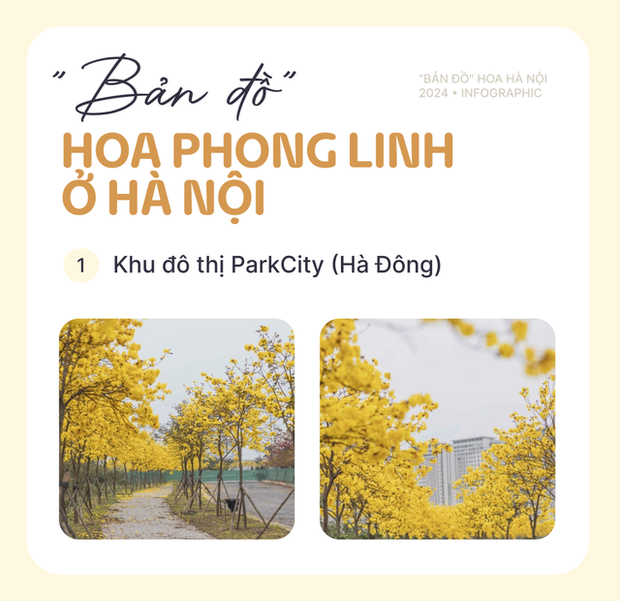 Khoảng vài năm trở lại đây, mùa xuân Hà Nội có thêm sự góp mặt của một loài hoa vàng rực rỡ - hoa phong linh. Lác đác trên những con đường ở trung tâm thành phố sẽ bắt gặp những cây hoa đã nở vàng rực. Nhưng để tìm thấy cả một "vùng trời" hoa phong linh thì dân tình rủ nhau tới "con đường hoa phong linh" ở mạn Hà Đông.