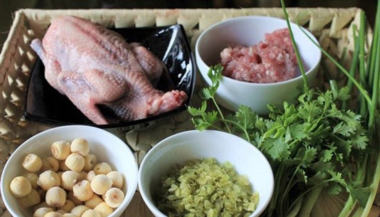 Các nguyên liệu (trừ giò sống) sơ chế và làm sạch.