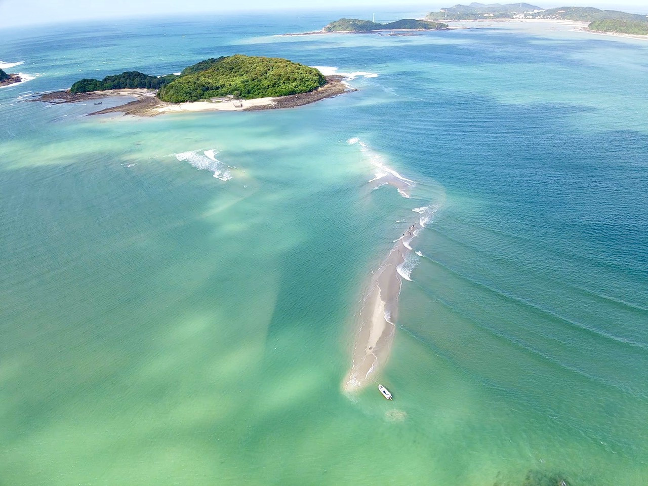 Tại vùng biển Thanh Lân, vào 8 ngày trong một tháng, một con đường cát mịn trải dài bỗng nổi lên giữa làn nước biển trong veo xanh biếc. Con đường được người dân trên đảo đặt tên là đường “tuỳ duyên”, vì không phải lúc nào cũng có thể bắt gặp.