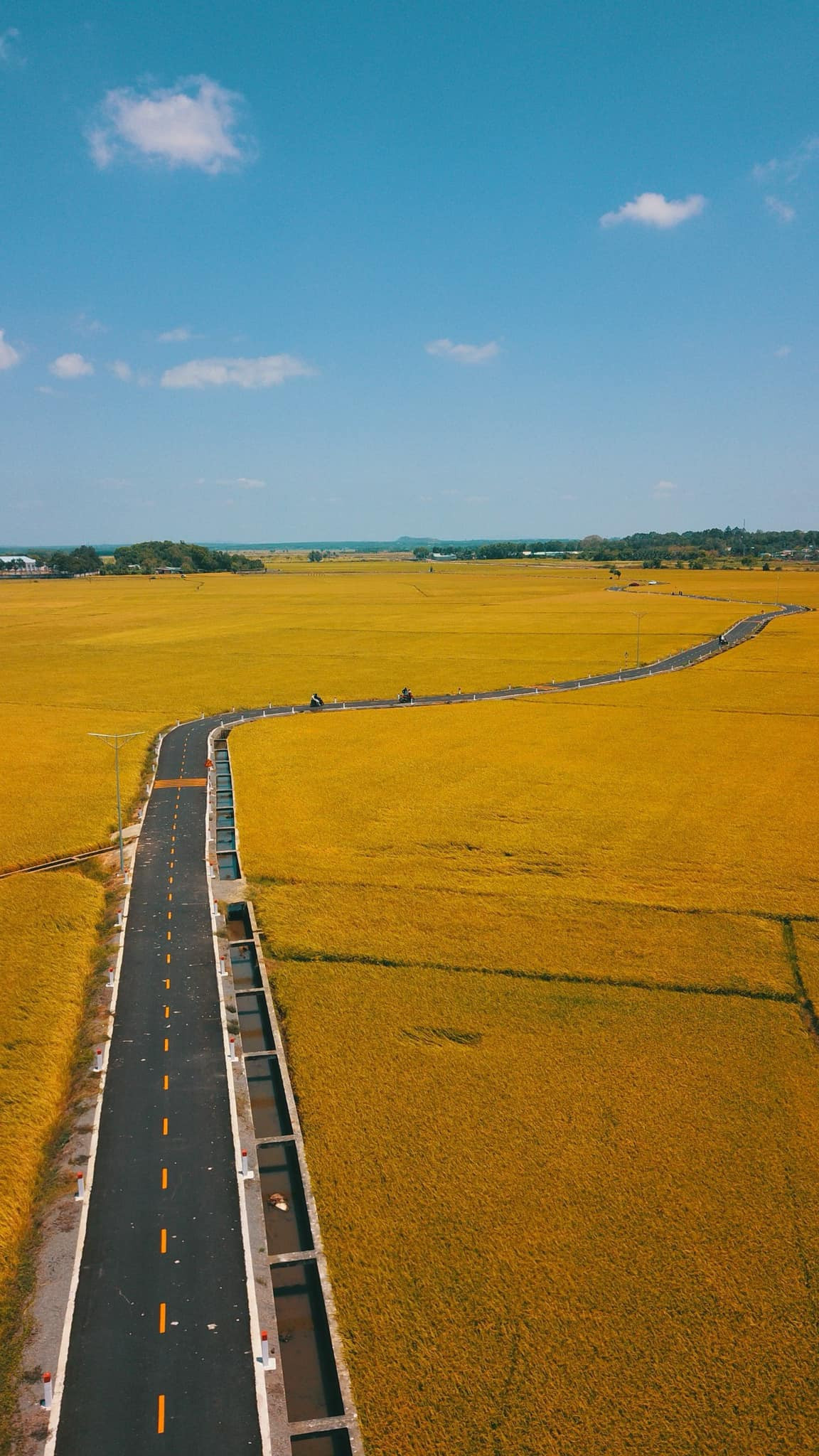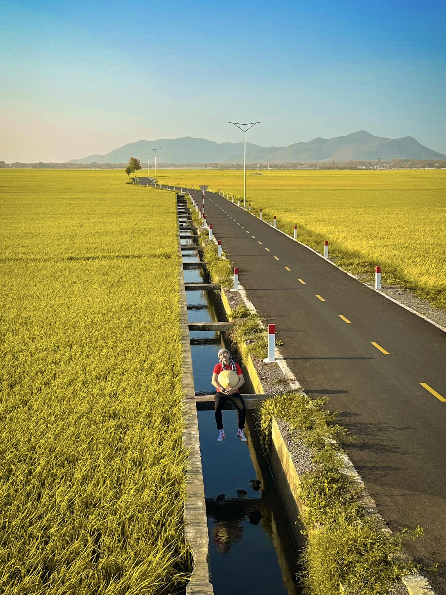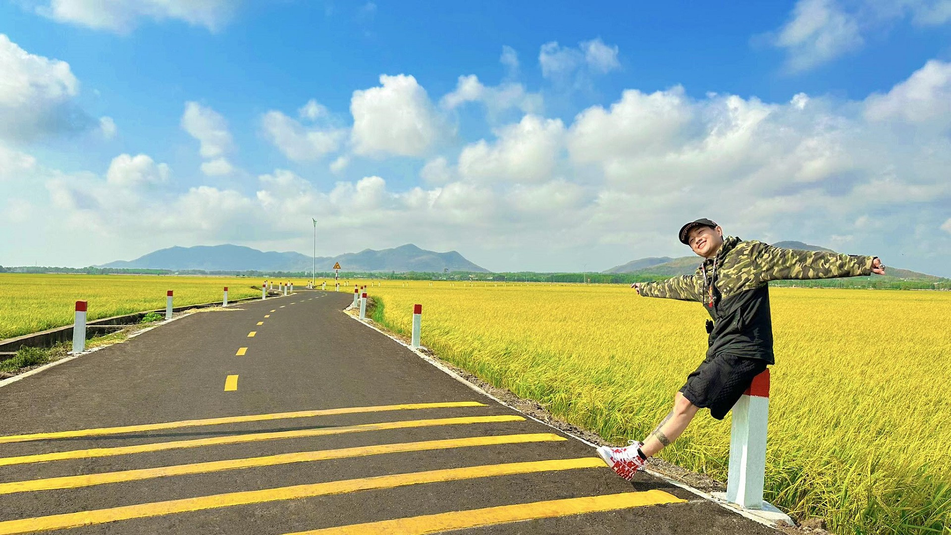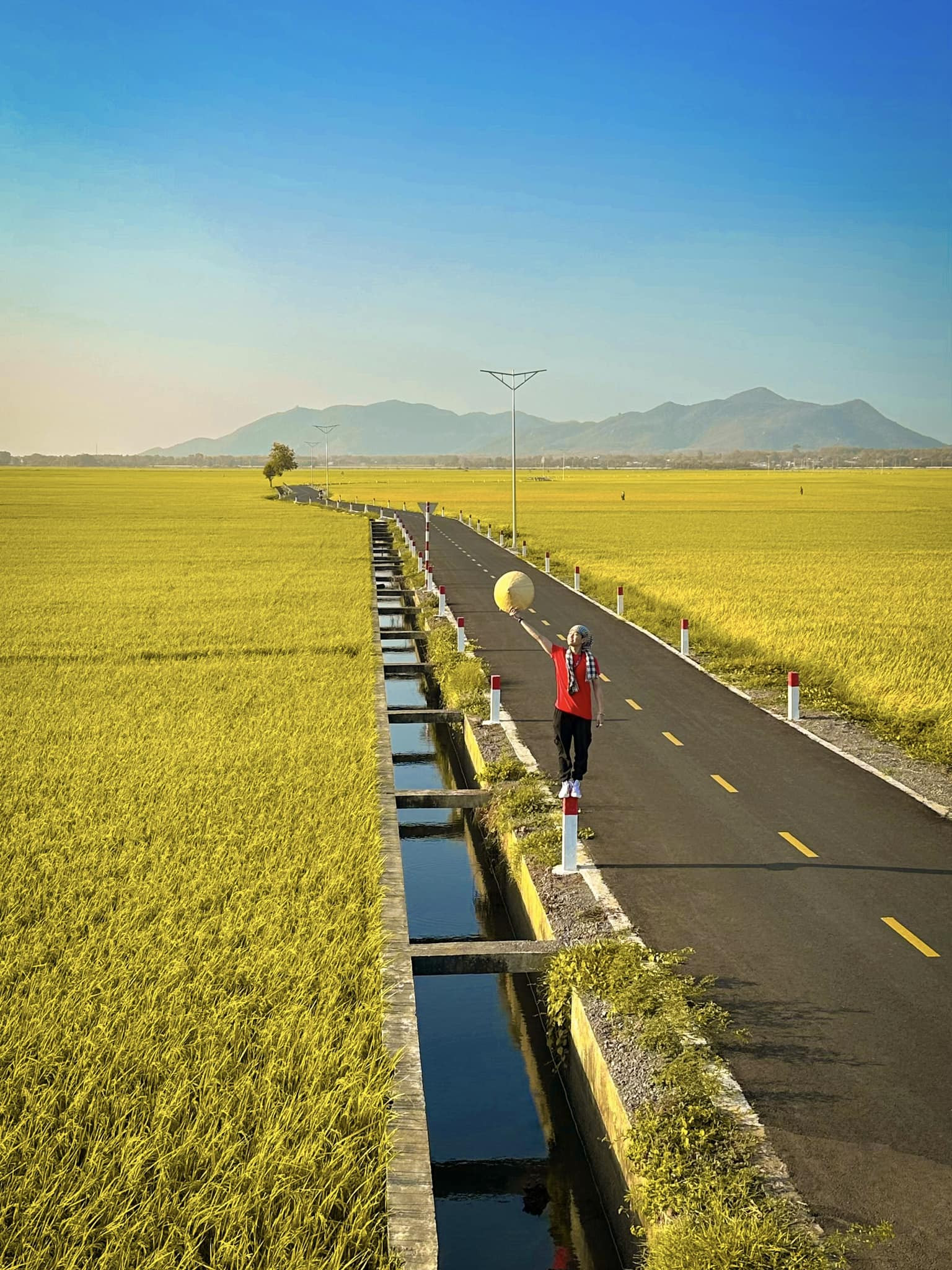 "Hình ảnh con đường nhựa băng giữa cánh đồng làm mình liên tưởng tới những bộ truyện tranh, phim hoạt hình Nhật Bản. Khung cảnh vừa gần gũi vừa nên thơ, khiến mình cảm thấy tự hào về vẻ đẹp đất nước", Woai Nguyễn chia sẻ. Bộ ảnh của chàng trai nhận được hàng chục ngàn lượt tương tác trên mạng xã hội.