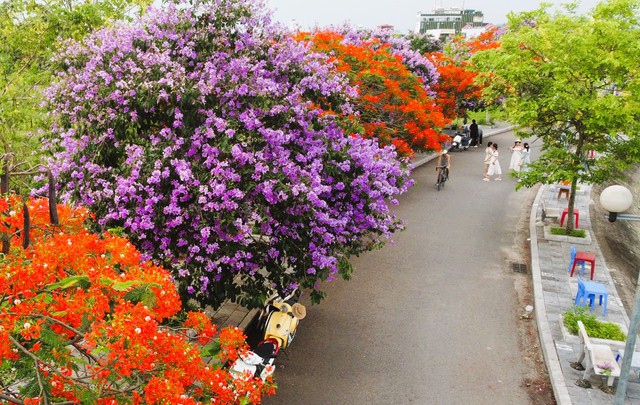 Hoa bằng lăng, hoa phượng, muồng hoàng yến... đang mùa nở rộ khiến con đường quanh công viên hồ Đồng Chiệc (TP Thanh Hóa) được giới trẻ ví đẹp như ở Hàn Quốc