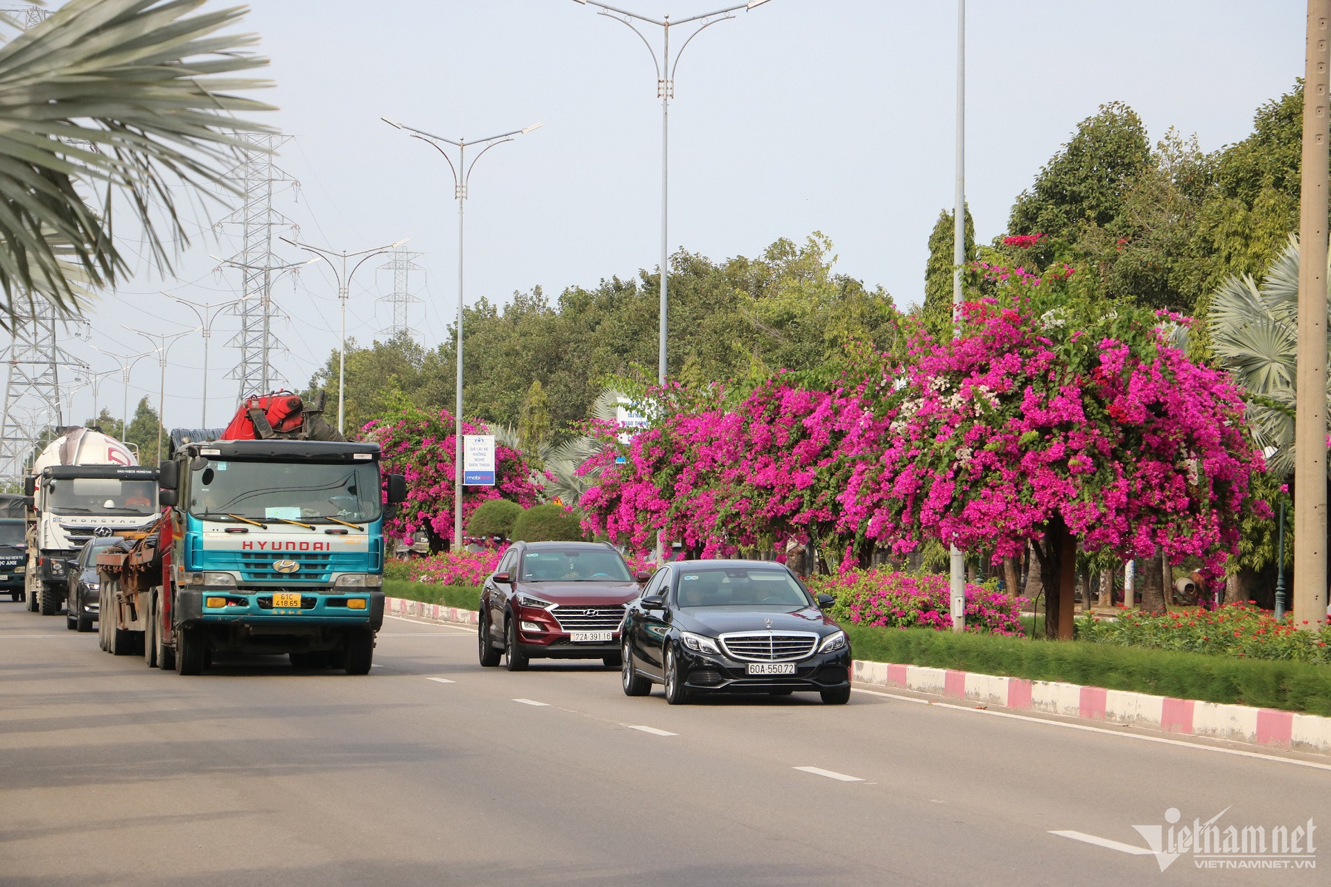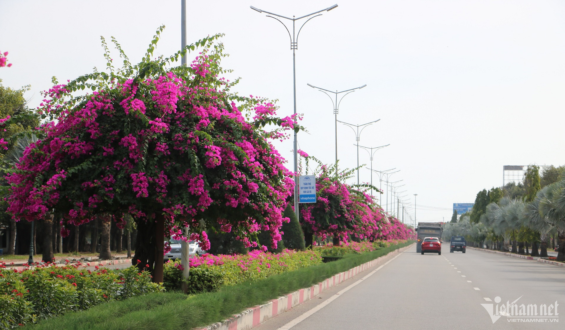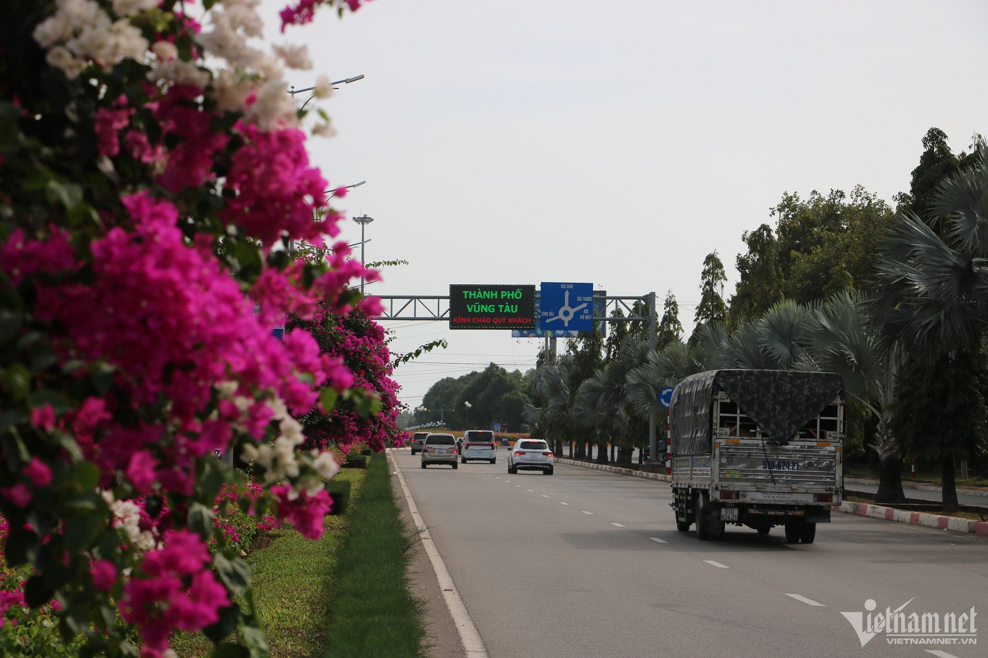 Trải dài khoảng 17km trên cung đường từ TP Bà Rịa về trung tâm TP Vũng Tàu (tỉnh Bà Rịa - Vũng Tàu), hàng hoa giấy bung sắc rực rỡ trên dải phân cách khiến du khách, người dân thích thú.