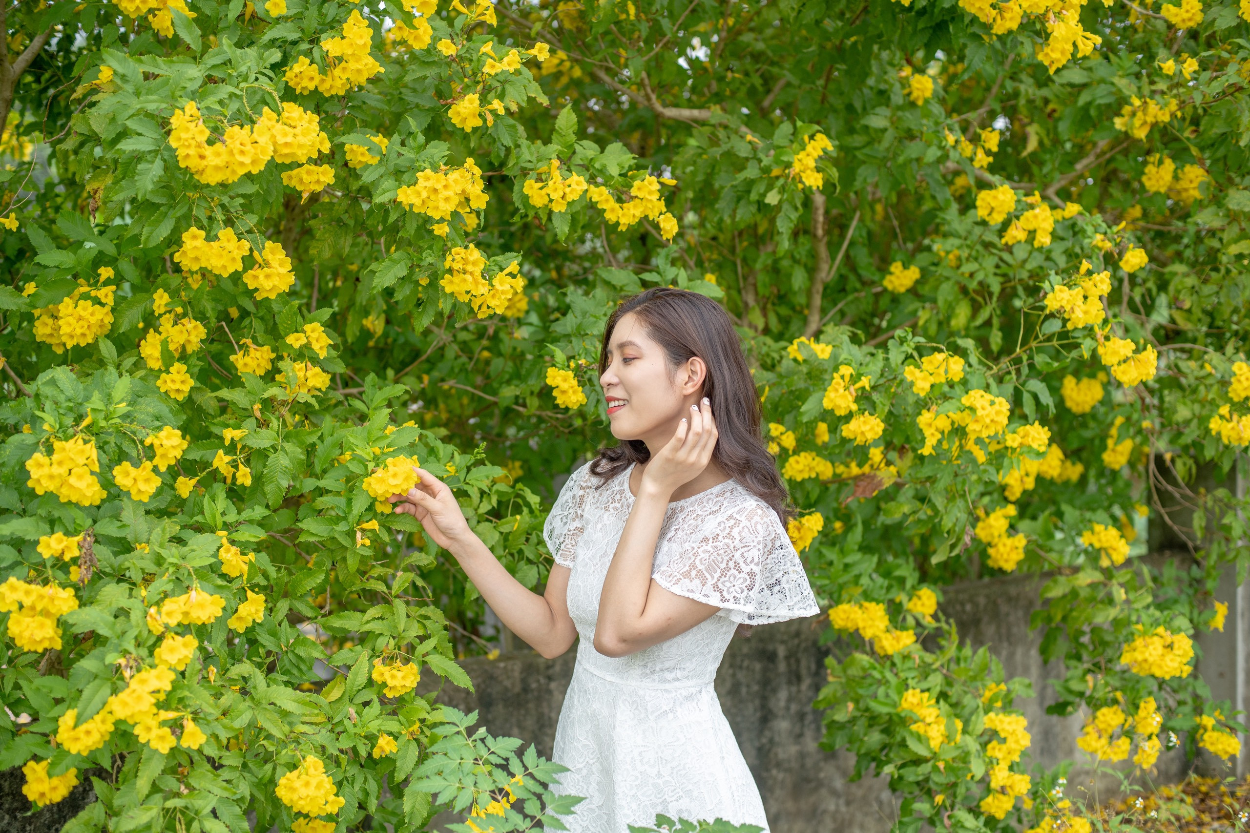 Chị Tạ Thị Hồng Hậu (Sơn Tây, Hà Nội) vừa có buổi ghé thăm con đường hoa chuông vàng và chụp ảnh kỉ niệm. "Mình xa quê hương Sơn Tây vài năm để sang Nhật Bản sống và làm việc. Từng ngắm những con đường hoa anh đào, lá phong, ngân hạnh... nổi tiếng nhưng mình vẫn thấy rất bất ngờ về con đường hoa chuông vàng này. Khung cảnh ở đây yên bình, mộc mạc, khí hậu trong lành, là điểm đến đáng trải nghiệm tại ngoại thành Hà Nội", chị Hậu chia sẻ.