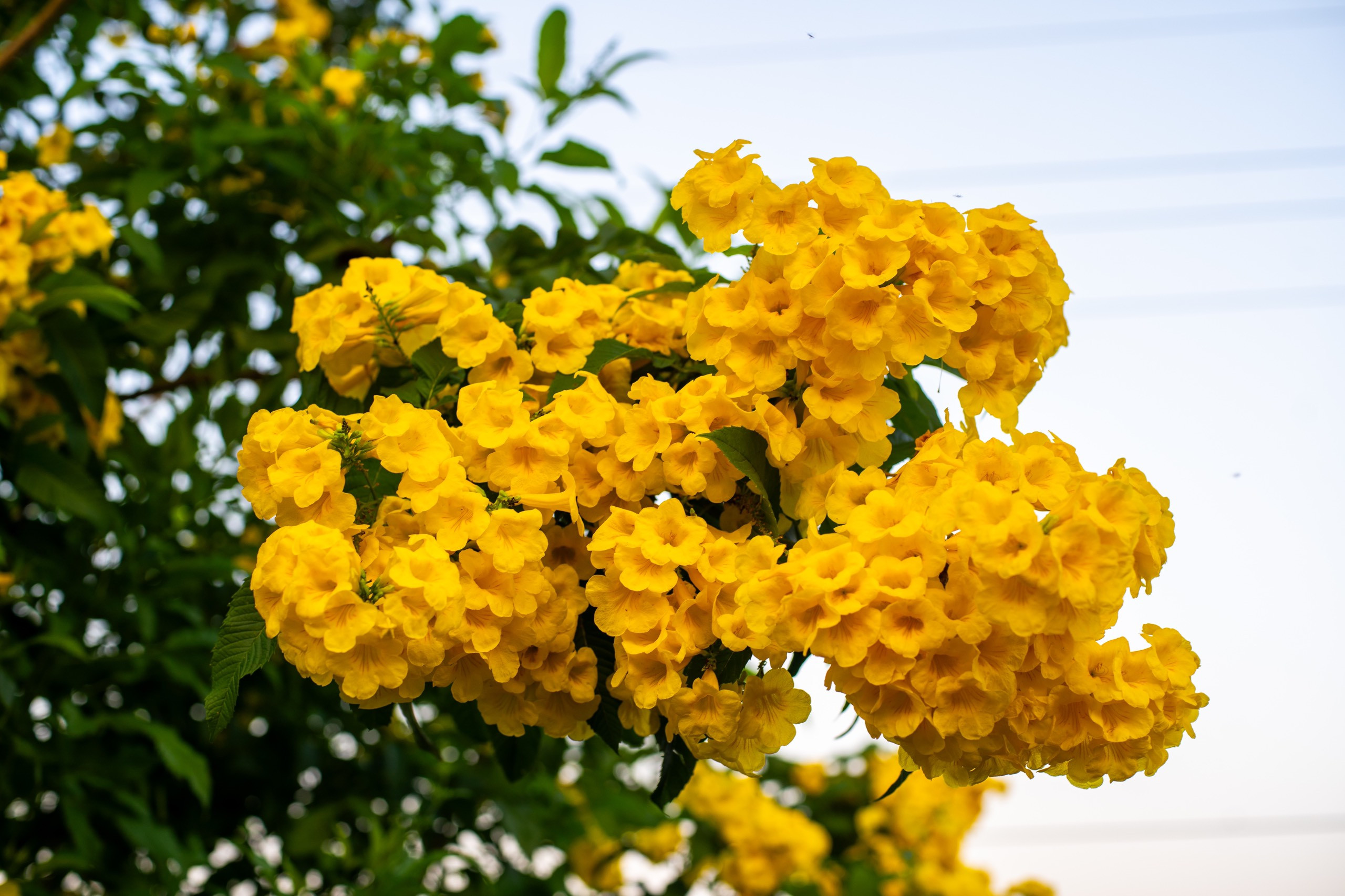 Hoa chuông vàng còn được gọi với nhiều tên khác nhau như hoa chùm ớt, có nguồn gốc từ các vùng phía Nam của nước Mỹ. Mỗi khi ra hoa, cây thường rụng hết lá để phơi bày những chùm hoa rực rỡ. Theo anh Minh Long, con đường hoa này được trồng năm 2020 và từ năm 2022 đến nay bắt đầu nở rộ. Những cây hoa được hội phụ nữ thôn, xã, lực lượng bộ đội tại khu vực chăm sóc.
