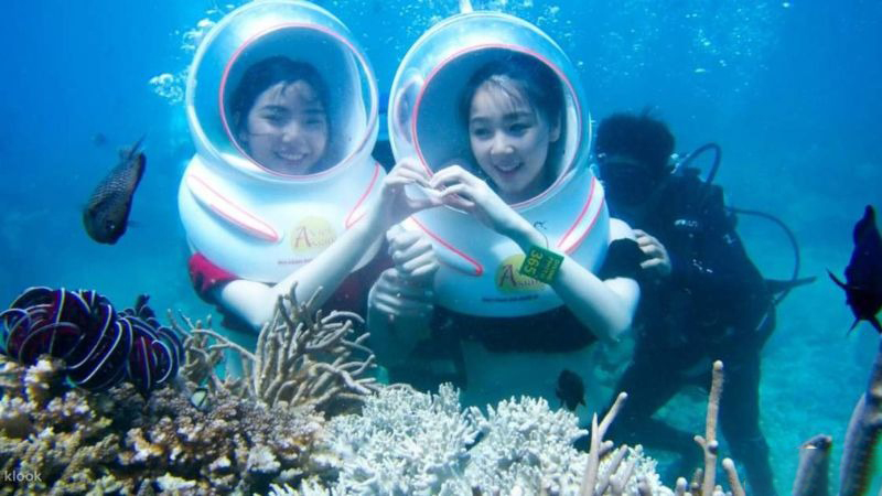 Không chỉ tận hưởng những làn gió mát rượt từ biển cả mà du khách còn được tận mắt chứng kiến các sinh vật sống động dưới lòng biển. Đây cũng là cơ hội để cho bạn checkin những tấm hình chất lừ đem đi khoe với bạn bè đấy.