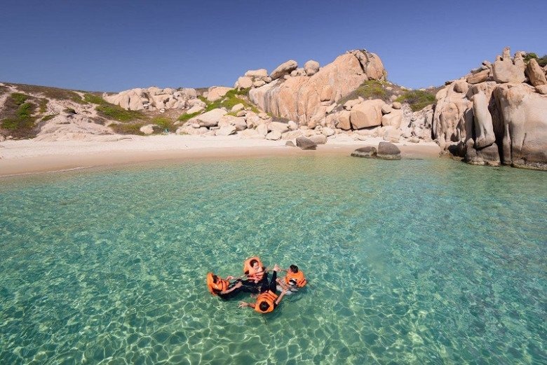 Như đã nói, Cù Lao Câu là hòn đảo “đẹp như trên phim” với bãi biển sạch, nước trong veo. Bạn có thể thả mình dưới làn nước biển và hoàn toàn thư giãn. Ngụp lặn đã đời xong thì lại lên bờ nghịch cát. Cát ở đây trắng tinh, mịn màng mà không phải bờ biển nào cũng có.