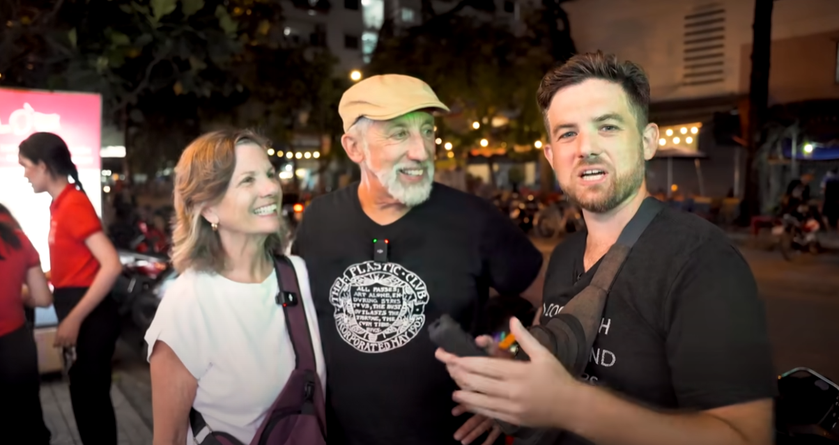 Gần đây nhất, Chad đón bố mẹ từ Mỹ tới Việt Nam để trải nghiệm chuyến foodtour độc đáo bằng xe máy. Bố mẹ của anh là ông Craig và bà Carol tỏ ra rất phấn khích trước tour ẩm thực thú vị này.