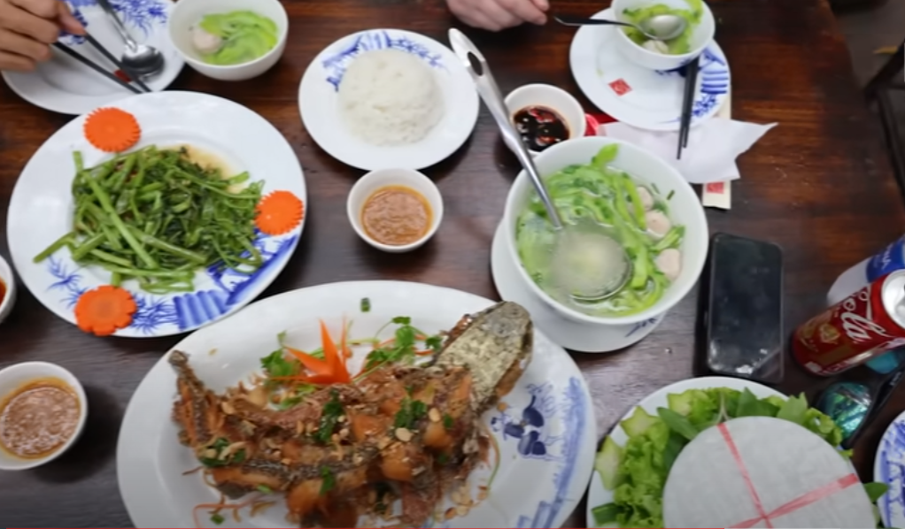 Cả hai vừa ăn vừa trò chuyện vui vẻ. Jongrak nhận xét, món cá lóc chiên giòn cuốn kèm bánh tráng ăn rất ngon. Tuy nhiên, anh thừa nhận món canh khổ qua hơi khó ăn vì có vị đắng.