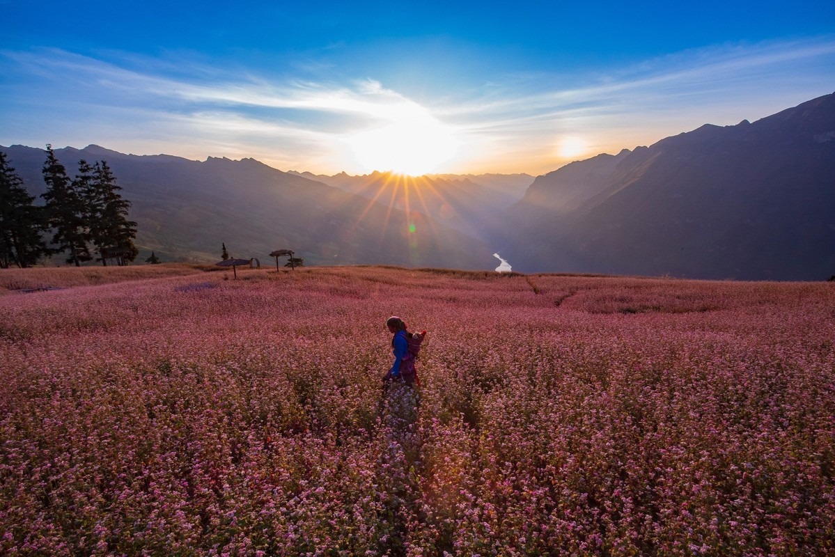 Lên cao nguyên Đồng Văn, du khách sẽ được thỏa sức thưởng ngoạn bức tranh sắc màu khi núi rừng khoác lên mình lớp áo màu hồng tím của hoa tam giác mạch.