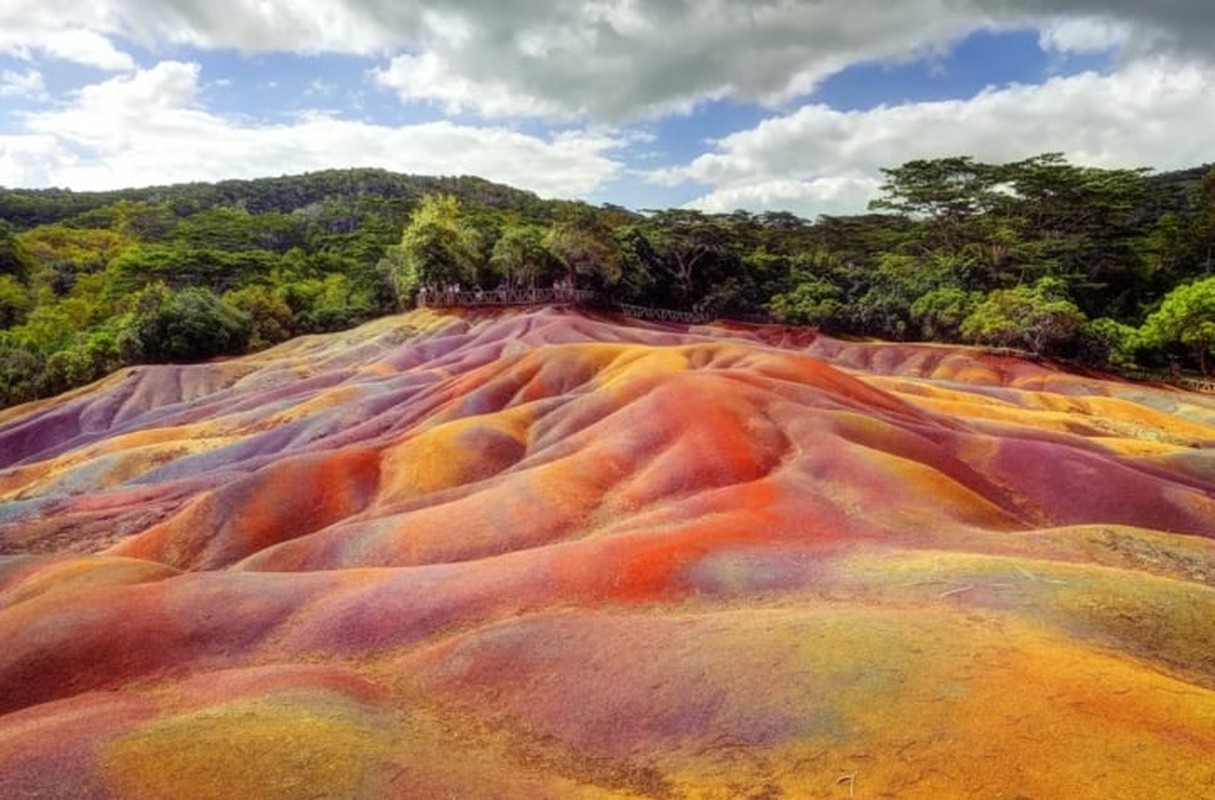 Công viên địa chất Seven Colored Earth ở Mauritius nổi tiếng thế giới là vùng đất "7 sắc cầu vồng" đẹp như trong cổ tích. Với niên đại khoảng 7 triệu năm tuổi, những đụn cát tại đây có nhiều màu sắc nổi bật.