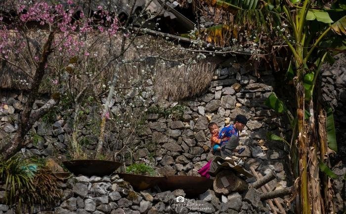 Điều tuyệt vời làm nên nét đẹp cổ điển, thâm trầm của Lao Xa chính là lối kiến trúc của những ngôi nhà cổ bằng đất với lớp mái ngói âm dương. Xung quanh ngôi nhà ấy là những cây đào, cây mận đua nhau nở hoa, đẹp rực rỡ cả một góc Hà Giang.