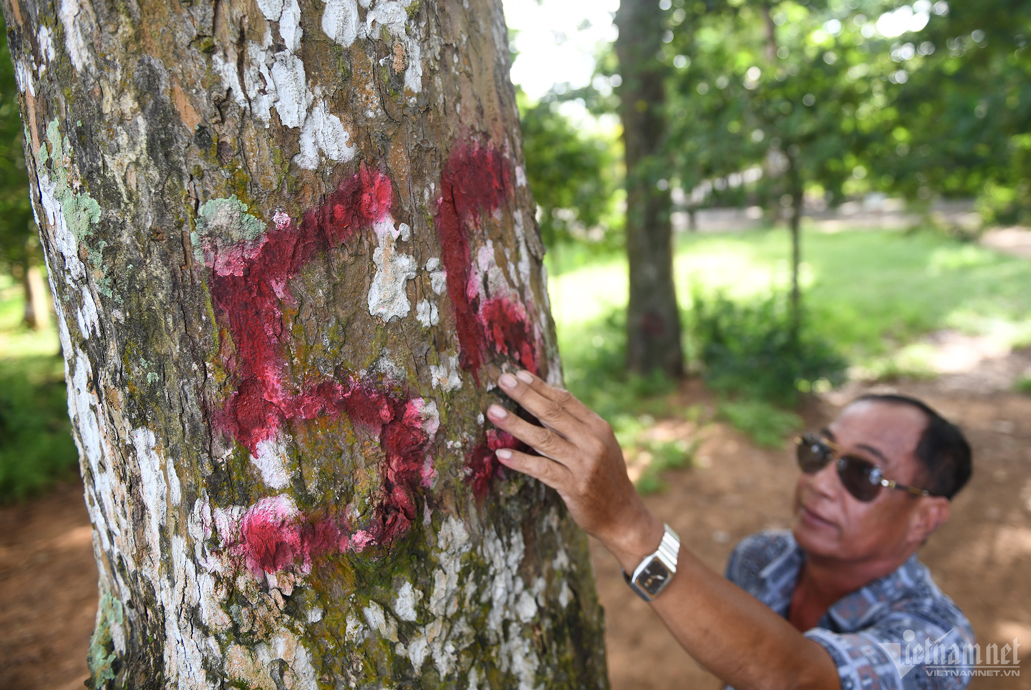 Những cây sao, cây dầu cổ thụ quanh ao được đánh số thứ tự để dễ quản lý.