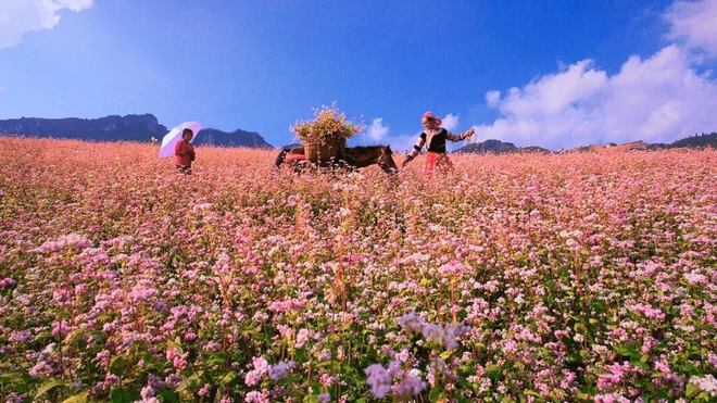 Đầu tiên trong danh sách là cao nguyên đá Đồng Văn. Cao nguyên là một phần của Công viên Địa chất toàn cầu UNESCO. Đây cũng là khu vực nổi tiếng với những cánh đồng hoa tam giác mạch rực rỡ mỗi độ mùa xuân. Bên cạnh tham quan, chụp ảnh với những cánh đồng hoa tam giác mạch, du khách khi đến với cao nguyên đá Đồng Văn còn có cơ hội ghé thăm nhiều ngôi làng hay nhà truyền thống cổ của người bản địa.