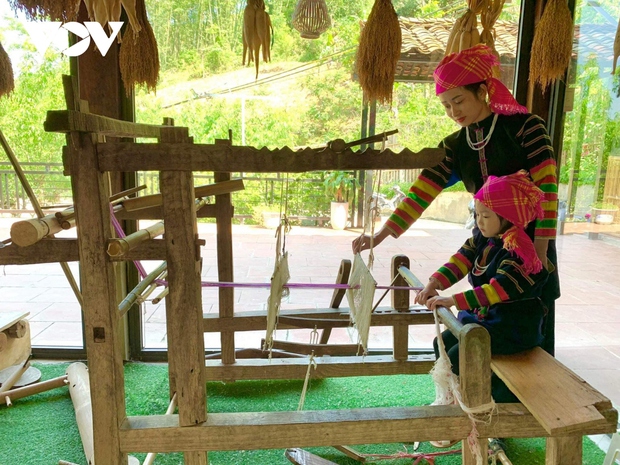 "Hiện tại có 2 nhà làm du lịch cộng đồng như homestay Thuyết Nghĩa, lượng khách rất đông. Xóm có việc gì sẽ họp luôn tại nhà văn hóa cộng đồng. Khách đến đông, bà con làm thổ cẩm để bán cho khách được rất nhiều, như một chiếc túi trầu này thôi đã được 200.000 đồng", anh Na Văn Chương cho biết.