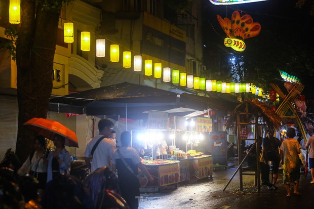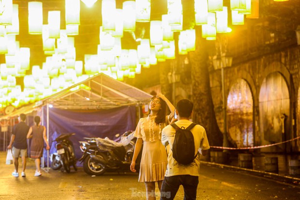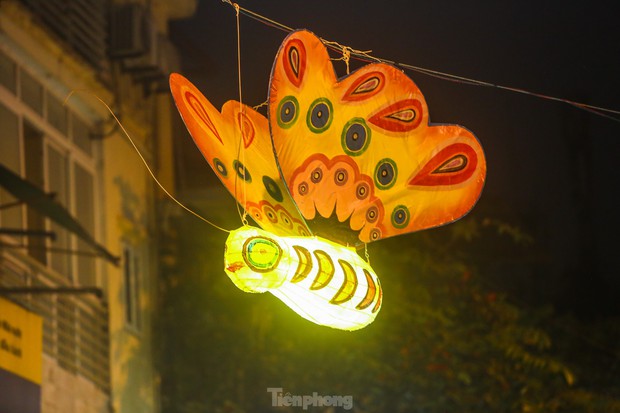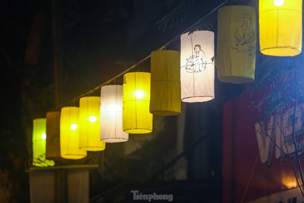 Nhiều người dân không khỏi ngỡ ngàng khi thấy 30 chiếc đèn trung thu truyền thống cỡ lớn được treo lơ lửng trên dọc tuyến phố Hàng Lược, Hàng Mã, Hàng Rươi (quận Hoàn Kiếm, Hà Nội).