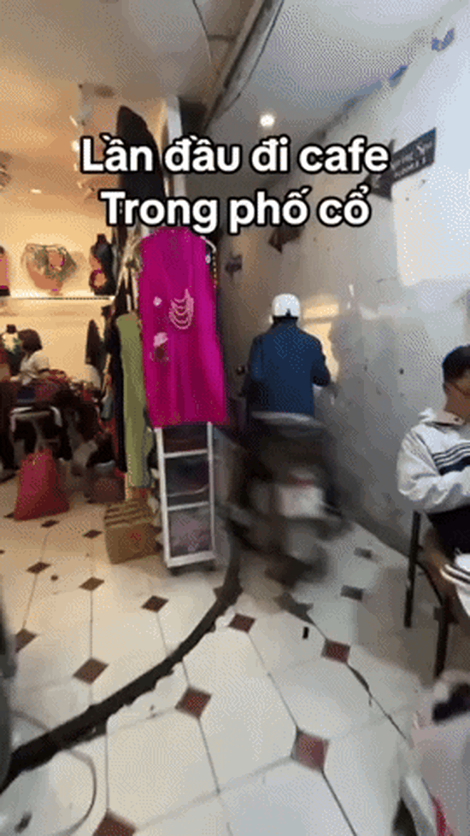 Mới đây một đoạn clip ghi lại cảnh tượng đi uống cà phê trên phố cổ Hà Nội thu hút sự chú ý của cộng đồng mạng. Không giống như những quán cà phê thông thường luôn nằm ở vị trí khách hàng có thể dễ dàng tìm thấy, để đến quán này du khách sẽ phải đi xuyên qua giữa lòng nhà một cửa tiệm quần áo, lối đi còn được lắp gạch bông khiến người ngoài cảm thấy giống như đang dắt xe vào nhà cất vậy.