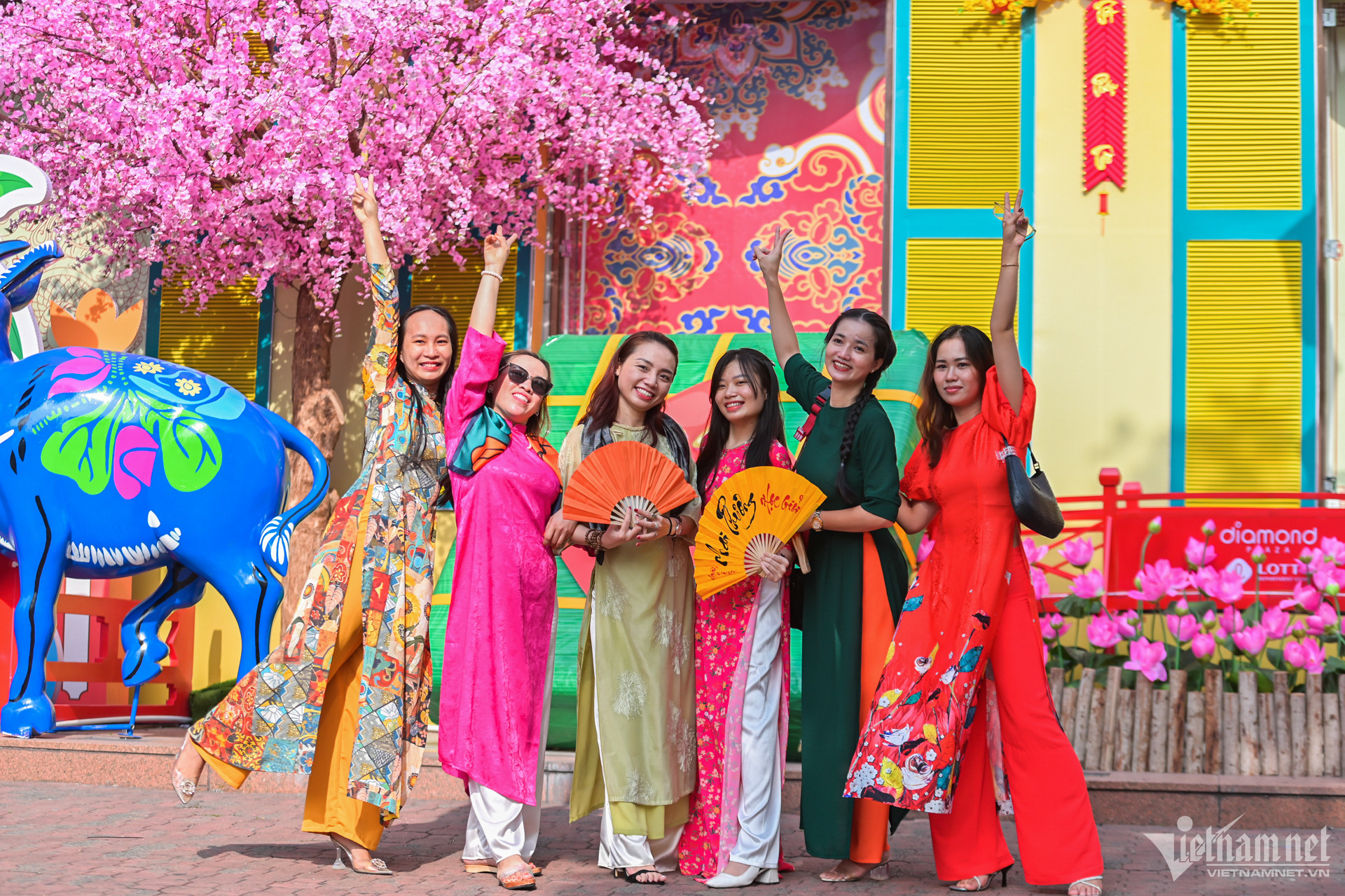 Những ngày này, nhiều bạn trẻ xúng xính diện váy áo xuống phố chụp ảnh tại "toạ độ" check - in Tết 3 miền Bắc - Trung - Nam mới toanh ngay trung tâm TP.HCM.