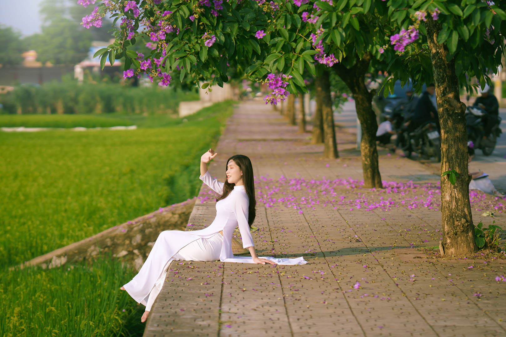 Theo tìm hiểu, con đường này dài gần 2km, nằm ở phường Trung Sơn Trầm, thị xã Sơn Tây, thành phố Hà Nội. Điểm ấn tượng của đường bằng lăng này là cây còn thấp nhưng hoa nở rộ đồng loạt, sắc tím đậm. Hàng chục cây bằng lăng được trồng thẳng tắp và nằm ven một cánh đồng lúa xanh mướt mắt. Con đường mang tới cảm giác nên thơ, mộc mạc, rất thích hợp cho các bộ ảnh áo dài, "nàng thơ" dịu dàng.
