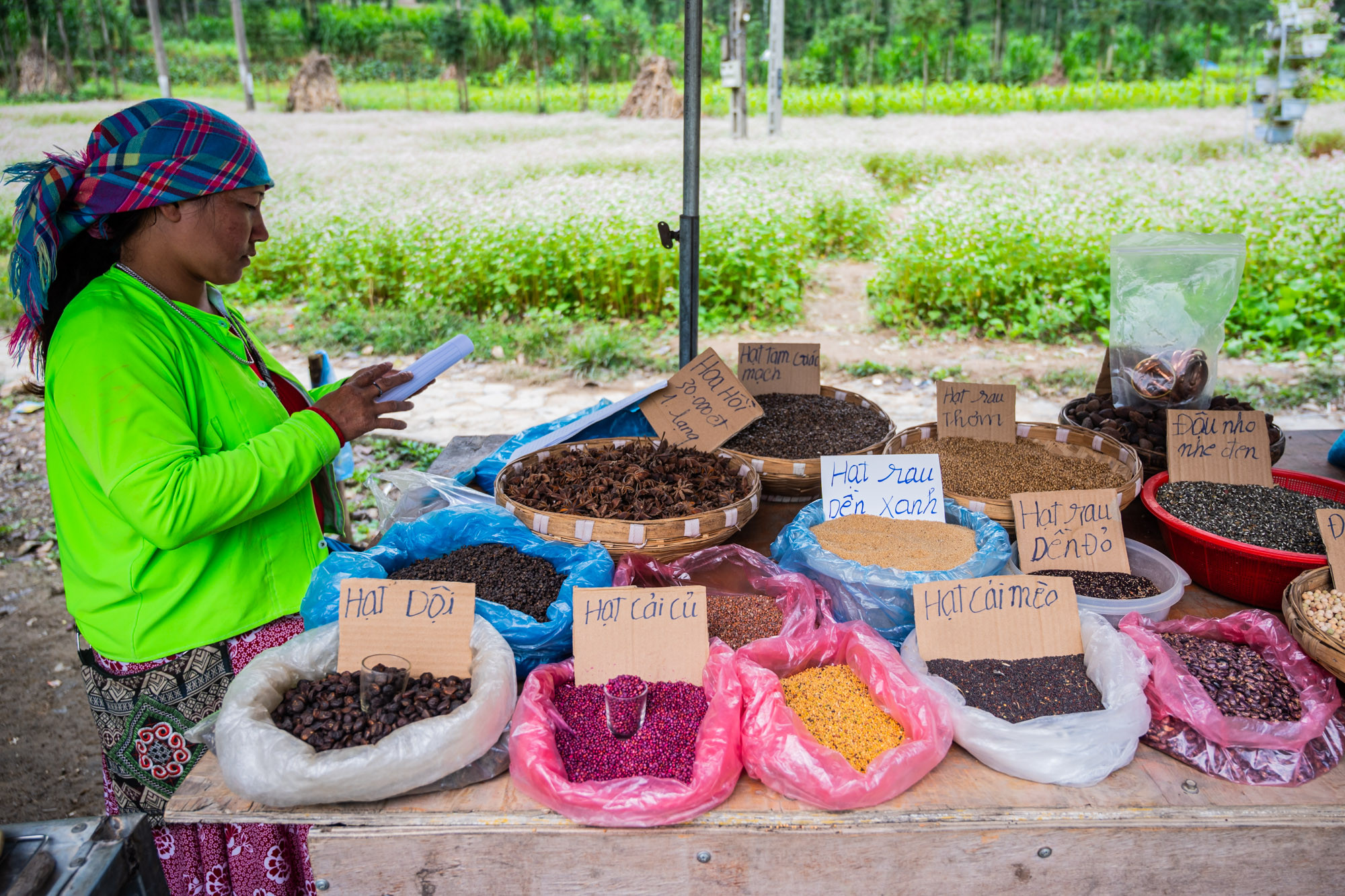 Hạt hoa tam giác mạch cũng được bày bán cho du khách với giá 10.000 đồng/lạng.