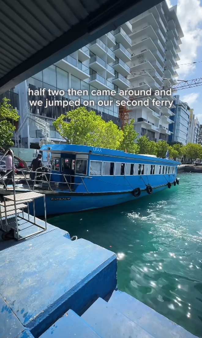 Cô cho biết: "Chúng tôi đã phải đợi ở Malé vài tiếng để bắt chuyến phà tiếp theo vì mỗi ngày chỉ có một chuyến vào lúc 2 giờ chiều. Sau đó, chúng tôi lên chuyến phà thứ hai đưa chúng tôi đến đảo Thulusdhoo. Chuyến đi này mất khoảng hai tiếng, trong khi tàu cao tốc chỉ mất khoảng nửa tiếng. Tuy nhiên, trong khi tàu cao tốc có giá tối thiểu là 25 bảng Anh thì phà địa phương chỉ có giá 1,20 bảng Anh/người. Vì vậy, tổng chi phí di chuyển trong ngày hôm nay của chúng tôi chưa đến 2 bảng Anh, thật đáng kinh ngạc".