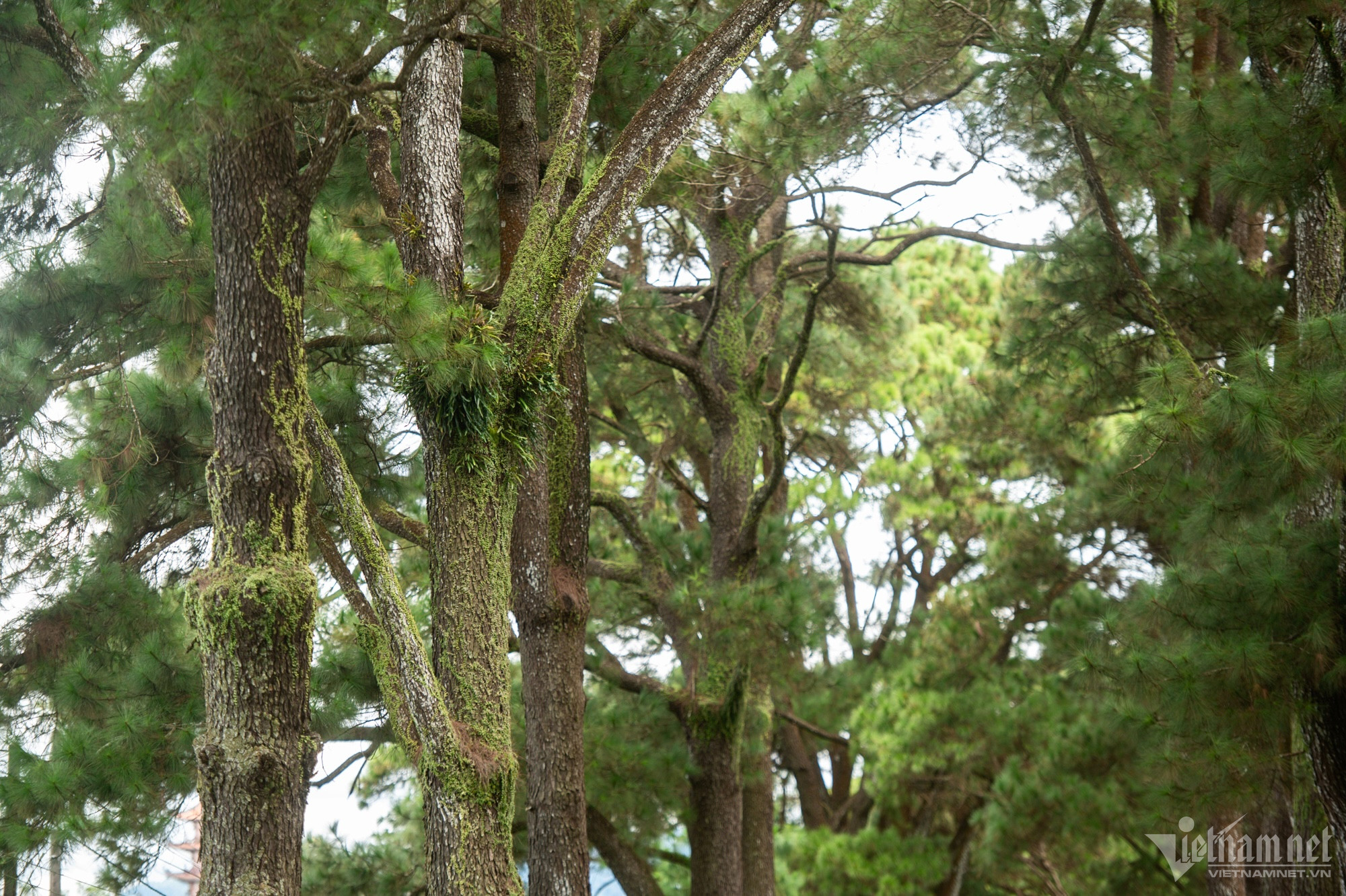 Những cây thông cao sừng sững phủ rêu phong, tán vươn rộng che mát cả con đường. Mỗi khi có ánh nắng chiếu xuyên qua kẽ lá, con đường bỗng trở nên sáng bừng và lung linh.