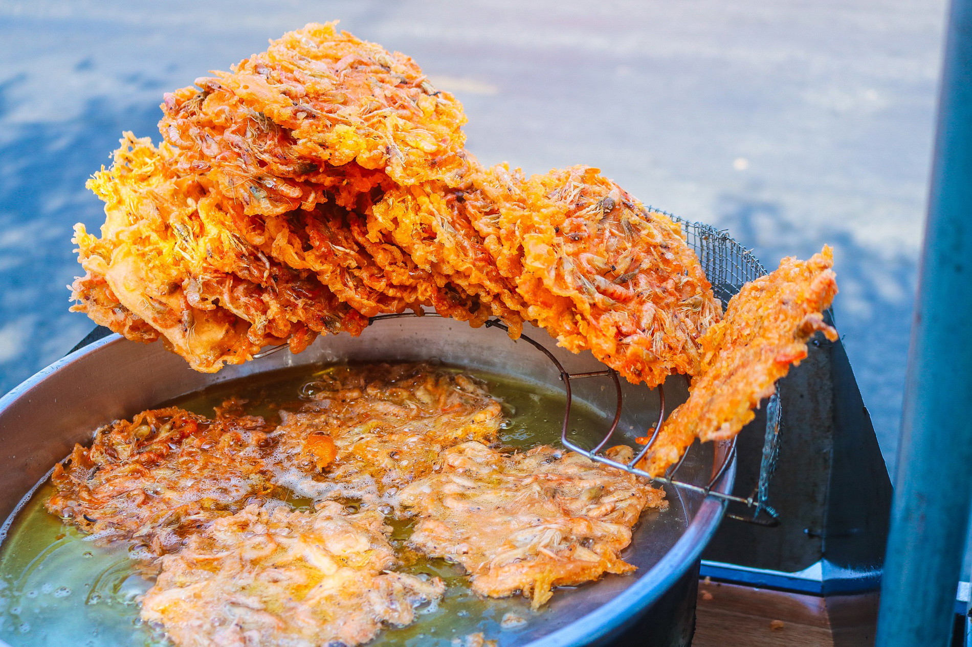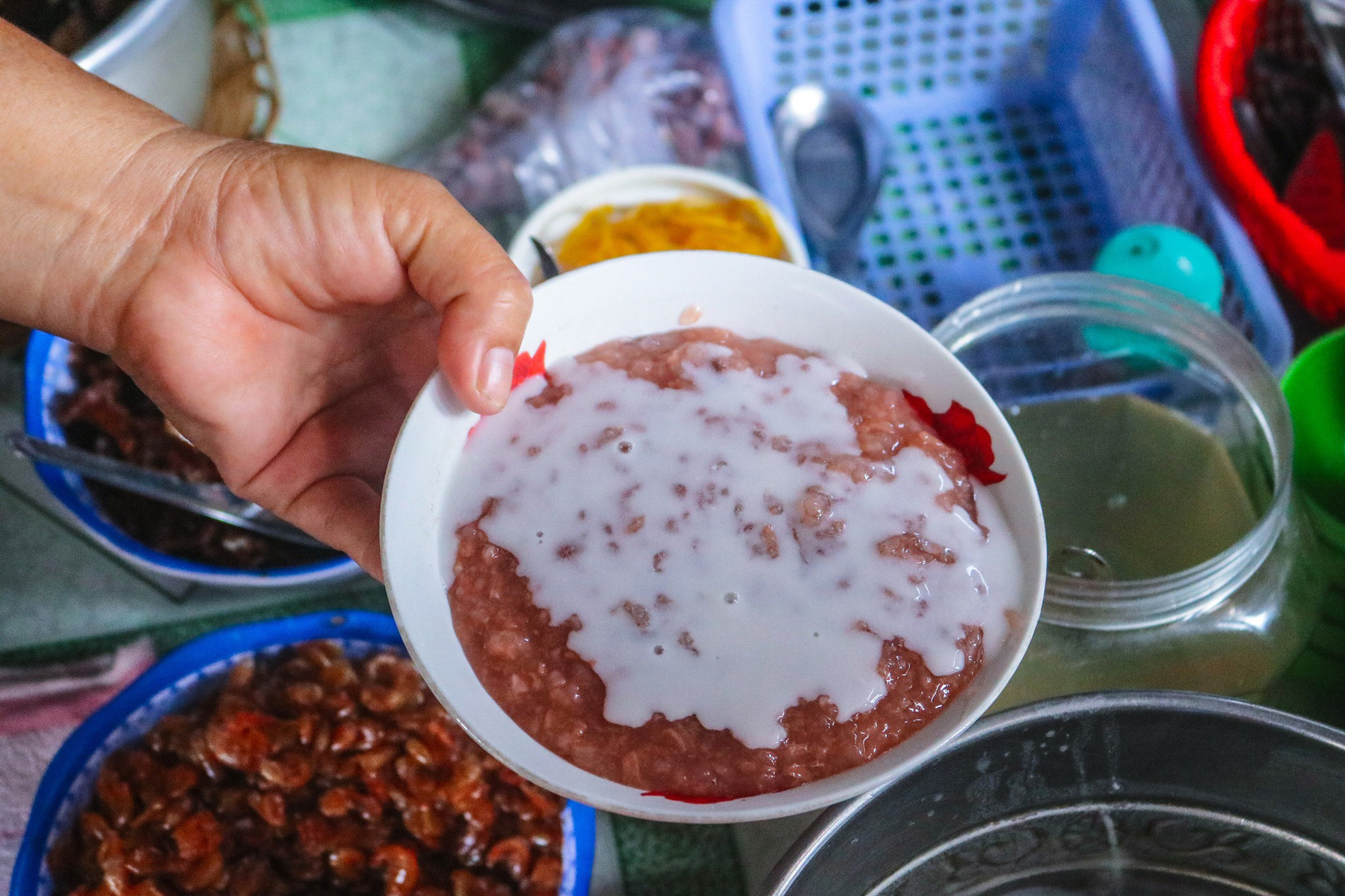 Sau đó người ta pha bột chiên giòn với nước lọc, cho tép vào trộn đều, nêm nếm chút gia vị cho thấm như bột nêm, nước mắm... và cho thêm trứng vịt, khoai môn, hành vào để tạo độ béo béo, bùi bùi cho món ăn.