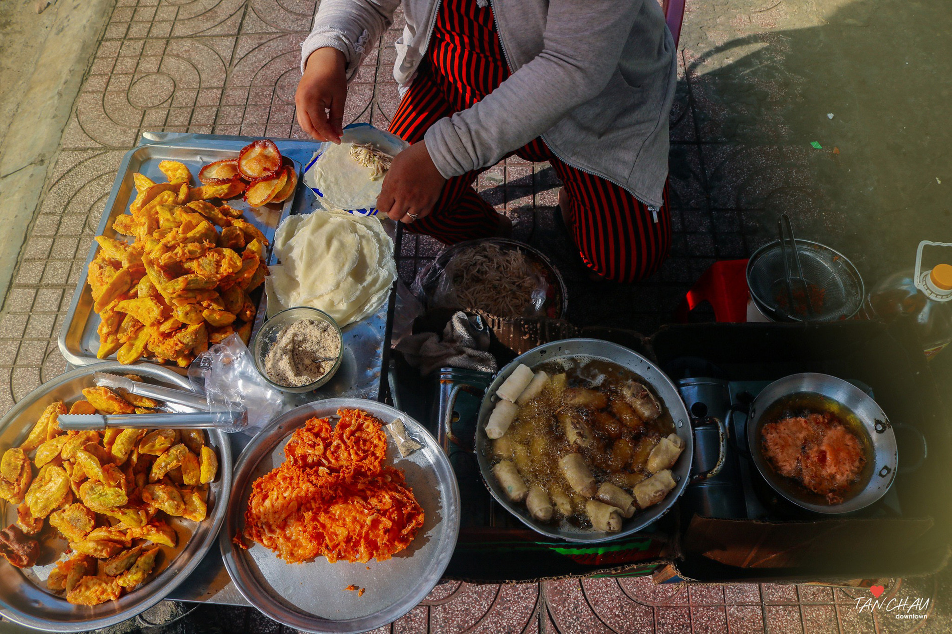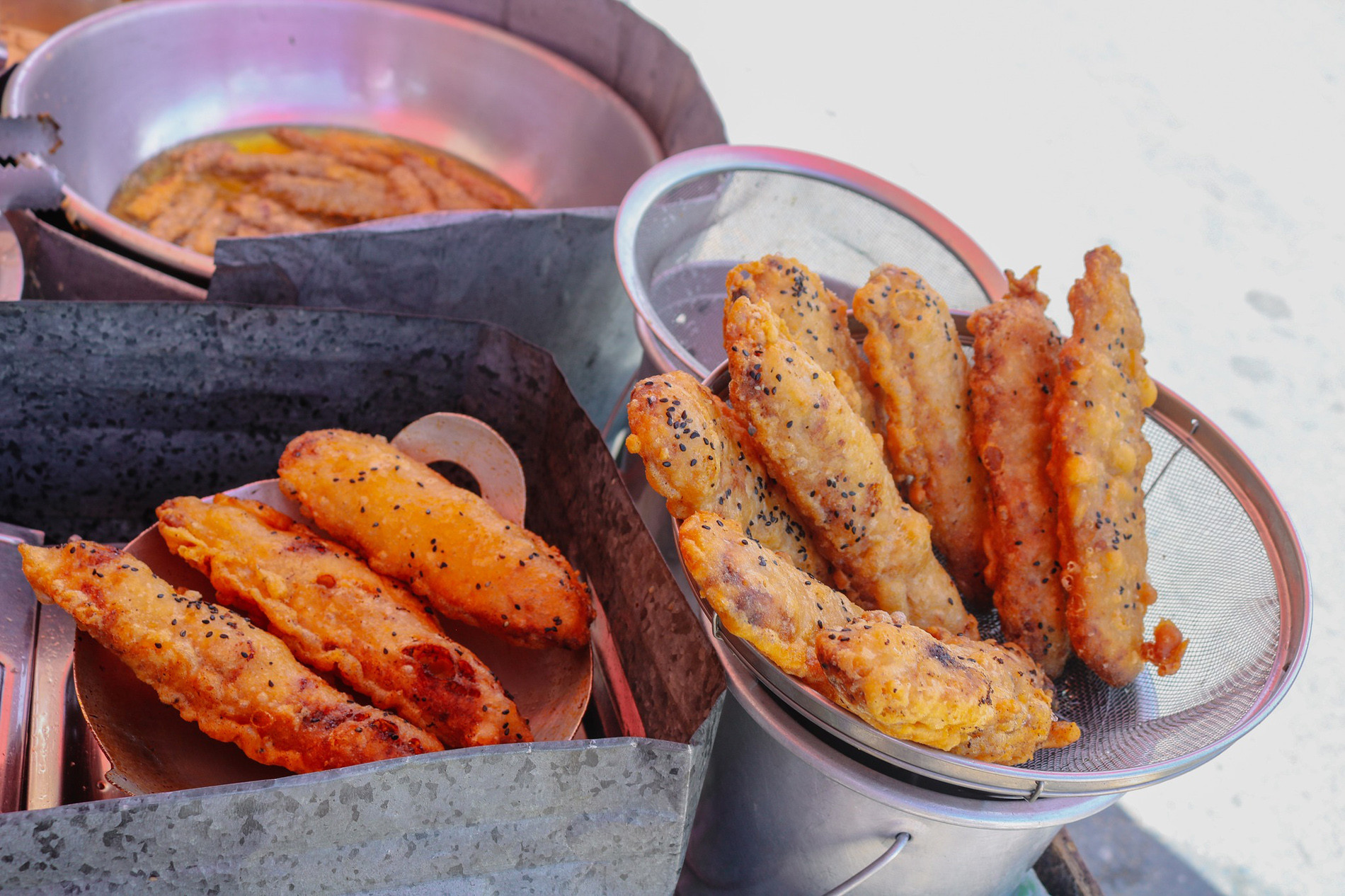 Bánh chuối sau khi chiên có lớp vỏ giòn rụm, giá chỉ 5.000 đồng/chiếc, đủ làm no bụng cho mọi người bữa xế chiều.