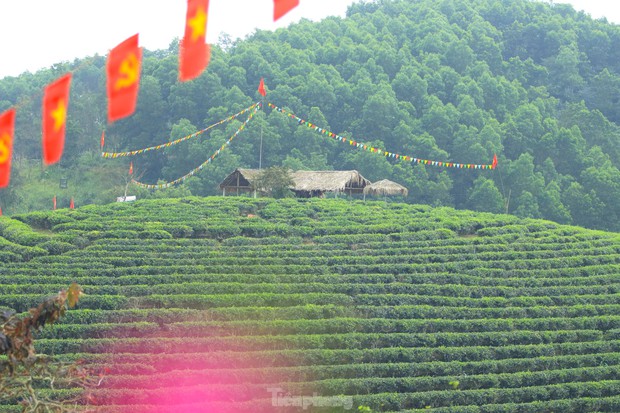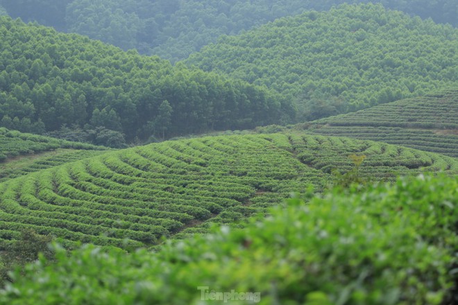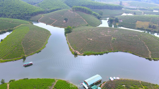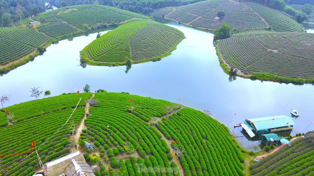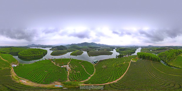 Những luống chè được trồng theo vòm trúc, soi bóng xuống mặt hồ rộng lớn tạo nên một khung cảnh yên bình, thơ mộng. Tại “ thiên đường sống ảo ” này, du khách có thể tận hưởng cảm giác thoải mái và ghi lại những khoảnh khắc khó quên.
