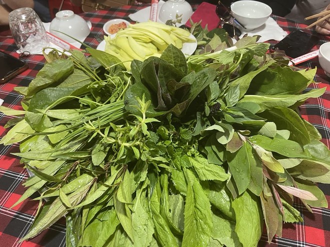 Đúng như tên gọi, Gỏi lá hút thực khách ngay từ ánh nhìn đầu tiên bởi màu xanh tươi mát của một mâm với khoảng 60 loại lá với đủ sắc xanh, đỏ, tím, vàng.