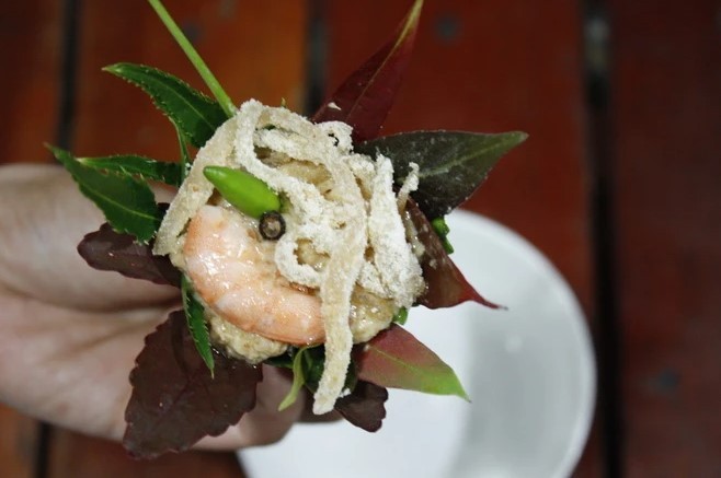 Một miếng gỏi lá đúng điệu khi thưởng thức phải có đủ cái hương vị thanh mát, ngạt ngào mùi cây lá, ngọt béo của tôm, thịt tươi, và đủ cả vị chua, thơm, nồng, chát... hòa lẫn để tạo nên cái dư vị khó quên về một món ăn đậm chất núi rừng.