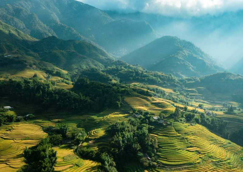 Còn vào mùa thu từ tháng 9 đến tháng 11, cảnh quan ở Sapa sẽ thay đổi sang sắc đỏ và vàng rực rỡ của lá, tạo ra một phong cảnh rất hữu tình và nên thơ. Đặc biệt khi trời cũng rất mát mẻ, đây là lúc tuyệt vời để khám phá các con đường trekking, thác nước nổi tiếng và thưởng thức không khí trong lành của vùng núi Sapa.