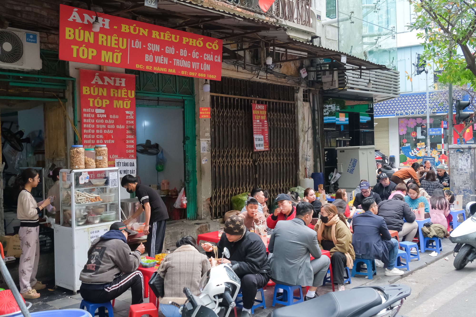 Ngay trong sáng mùng 1 Tết năm nay, dạo quanh phố phường cũng có thể bắt gặp ngay những vị khách đi du xuân sớm ghé ăn bún riêu, bún ốc. Ai cũng mang theo tâm trạng vui tươi, phấn khởi, hân hoan đón Tết, đón một mùa xuân mới sang.