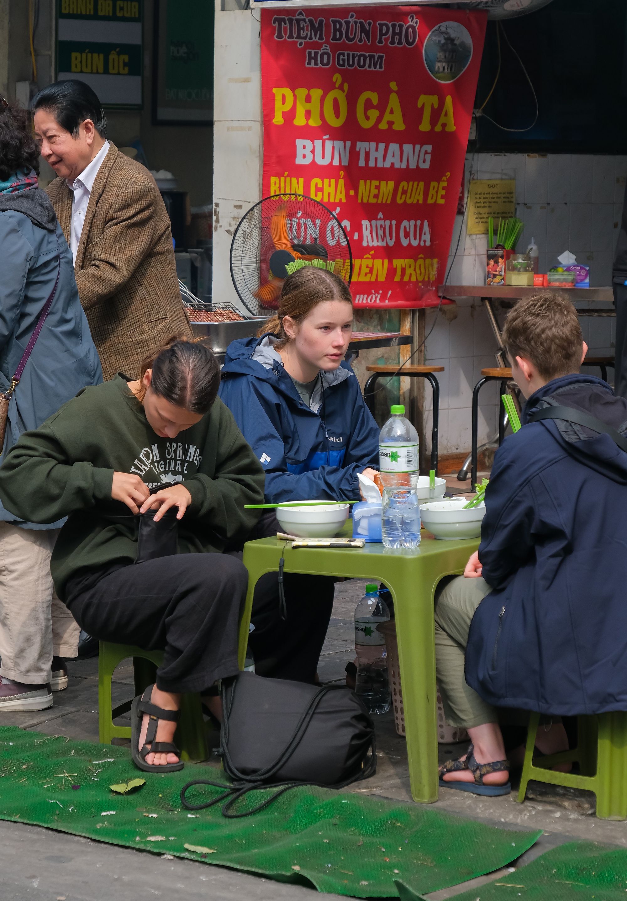 Đặc biệt, "điểm danh" ở các hàng bún ngày đầu năm còn có sự góp mặt của rất nhiều vị khách Tây. Một phần có thể do hàng quán những ngày này đóng cửa nhiều, một phần cũng là cách để họ cùng tận hưởng những nét độc đáo trong cái Tết của người Việt Nam.