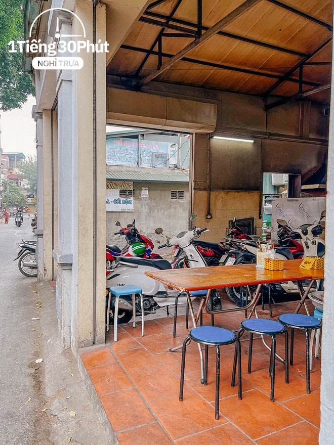 Đỗ xe ở sân cạnh quán, bước vào cửa, gây choáng ngợp đầu tiên là hơn chục chiếc bàn dài được xếp thẳng hàng, thoáng đãng, giữa hàng ghế ngồi vẫn có khoảng trống. Cảm giác như đang ngồi ở trong một nhà hàng chứ không phải quán cơm bình dân giữa lòng Hà Nội. Hơn nữa, khách còn có thể đi vào từ cửa phía đối diện - thông nhau với hàng bán phở bò vào buổi sáng.