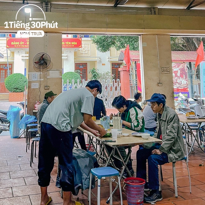 Minh Hoàng tới cùng các đồng nghiệp: “Em đã ăn ở đây từ thời còn là sinh viên trường Giao thông vận tải, hồi đó nhà cô cũng rộng nhưng chưa được như bây giờ, mấy năm gần đây mới sửa sang lại. Với em và các đồng nghiệp thì không cần phải nhà hàng cao sang gì cả, chỉ cần một nơi sạch sẽ và cơm canh hợp khẩu vị, hợp túi tiền là được”.