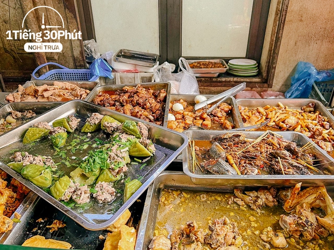 Bên cạnh những món ăn đã xếp sẵn ra khay thì lúc nào hàng cơm của cô Hiền cũng duy trì thêm 2-3 món nóng sốt, được đặt trên bếp với lửa liu riu, khách đến tự chọn từ trong nồi. “Món tủ của quán là cá sốt chua ngọt, ngày nào anh cũng phải ra trước 12 giờ mới mua được, còn muộn hơn chút thì có khi chỉ còn lại khúc đầu. Cá được giữ nóng nên mềm, không bị tanh, ăn trời lạnh hay nóng đều đưa cơm. Còn nồi bên cạnh, hôm thì cô để sốt vang, hôm thì thịt kho trứng, kho tàu”.