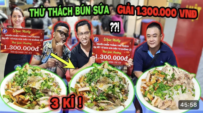 Người chơi khi tham gia thử thách cần ăn hết một tô bún sứa khổng lồ (bao gồm 1kg bún và 1,2kg đồ ăn kèm theo nước lèo) là có thể được thưởng ngay 1 triệu 300 nghìn đồng, còn nếu không ăn hết thì sẽ phải trả lại 300.000 nghìn đồng cho quán. Nếu như người chơi ăn hết được hai tô bún như vậy sẽ được chủ quán thưởng nóng lên đến 30 triệu đồng.
