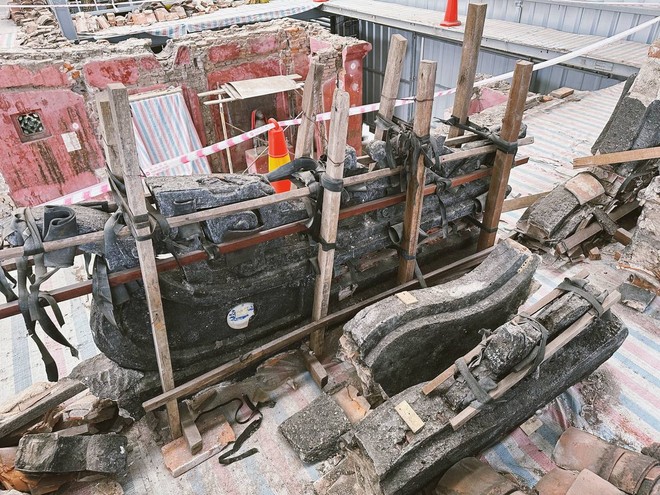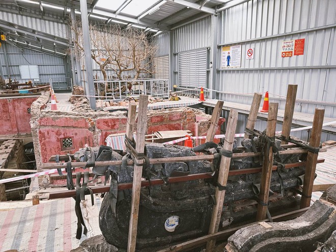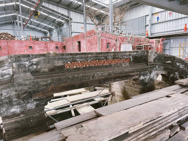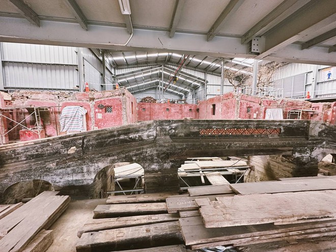 Sau tháo dỡ, từng góc cạnh, hình hài nguyên trạng, kết cấu và bố trí không gian của chùa Cầu được lộ rõ. Từ những viên gạch, mái ngói đến phần trang trí mái chùa Cầu được xếp gọn và bao bọc lại cẩn thận để tránh nứt gãy.
