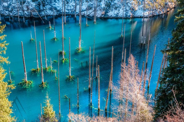 Khi nhìn từ xa, người ta sẽ có cảm tưởng như rừng cây đang mọc ngược, với phần gốc hướng lên trời và phần tán lá mọc phía dưới mặt nước. Bạn cũng không cần phải lặn xuống nước mới có thể nhìn thấy điều kỳ diệu này, vì nước hồ trong đến mức có thể nhìn thấy tất cả mọi thứ xảy ra bên dưới hồ, kể cả từ xa.