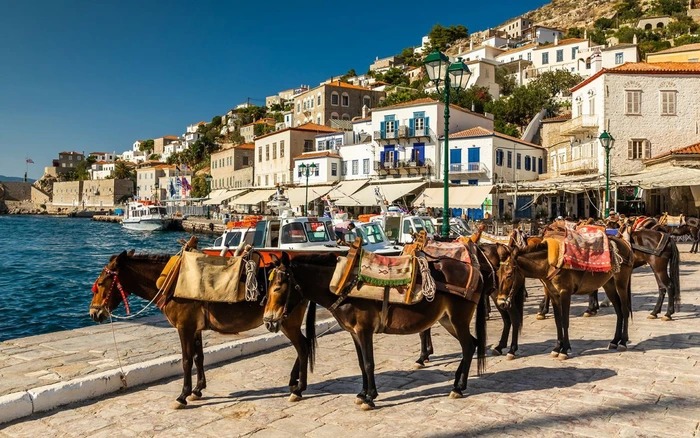 Bước xuống phà, đến cảng Hydra, trung tâm của hòn đảo, du khách sẽ gặp những chú ngựa duyên dáng thong dong đi qua những con đường lát đá cuội và mang đến hương vị nhịp sống nhàn nhã của hòn đảo.