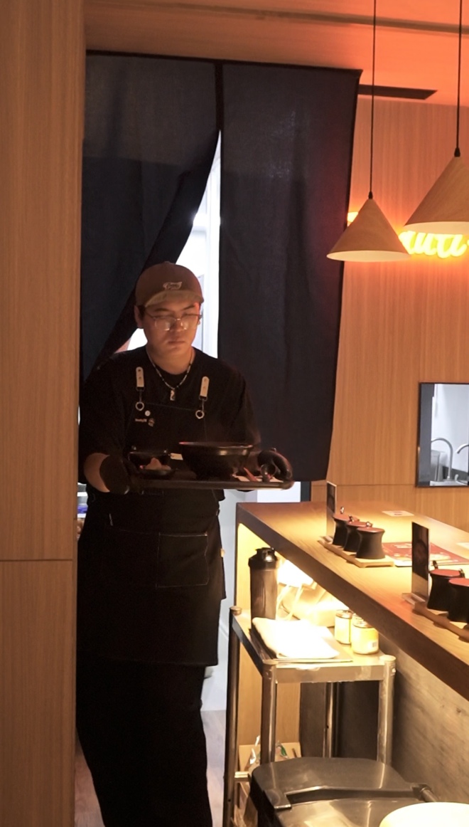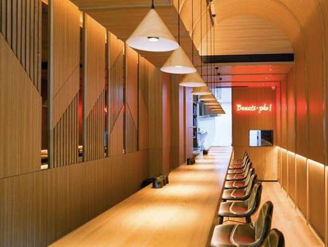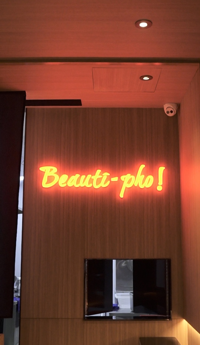 Bước đến quán phở "La Ganh" nằm ở một trong những khu phố nổi tiếng thuộc quận Tĩnh An, Thượng Hải, Call me Duy chia sẻ ấn tượng đầu tiên khi đến quán chính là không gian trông khá giống một quán mì ramen Nhật Bản, chỉ có khoảng 10 chỗ ngồi. Do vẫn chưa chính thức khai trương nên hiện tại thực đơn nhà hàng chỉ phục vụ một món phở bò, bán kèm quẩy và trứng chần, uống với trà sen.