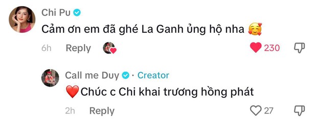 Sau khi rời khỏi quán, Call me Duy đã hào hứng chia sẻ trải nghiệm này lên mạng xã hội của mình để fan Việt có cái nhìn rõ nhất về quán phở của cô nàng Chi Pu. Đặc biệt hơn, Chi Pu đã để lại lời cảm ơn dưới phần bình luận đến anh chàng dù cả hai chẳng hề thân thiết. Điều này khiến dân tình lại càng thích thú và thực sự muốn được thưởng thức phở "La Ganh".