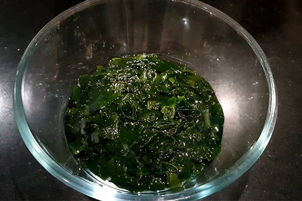 Ngâm rong biển trong khoảng 5 phút, sau đó rửa sạch, để ráo.