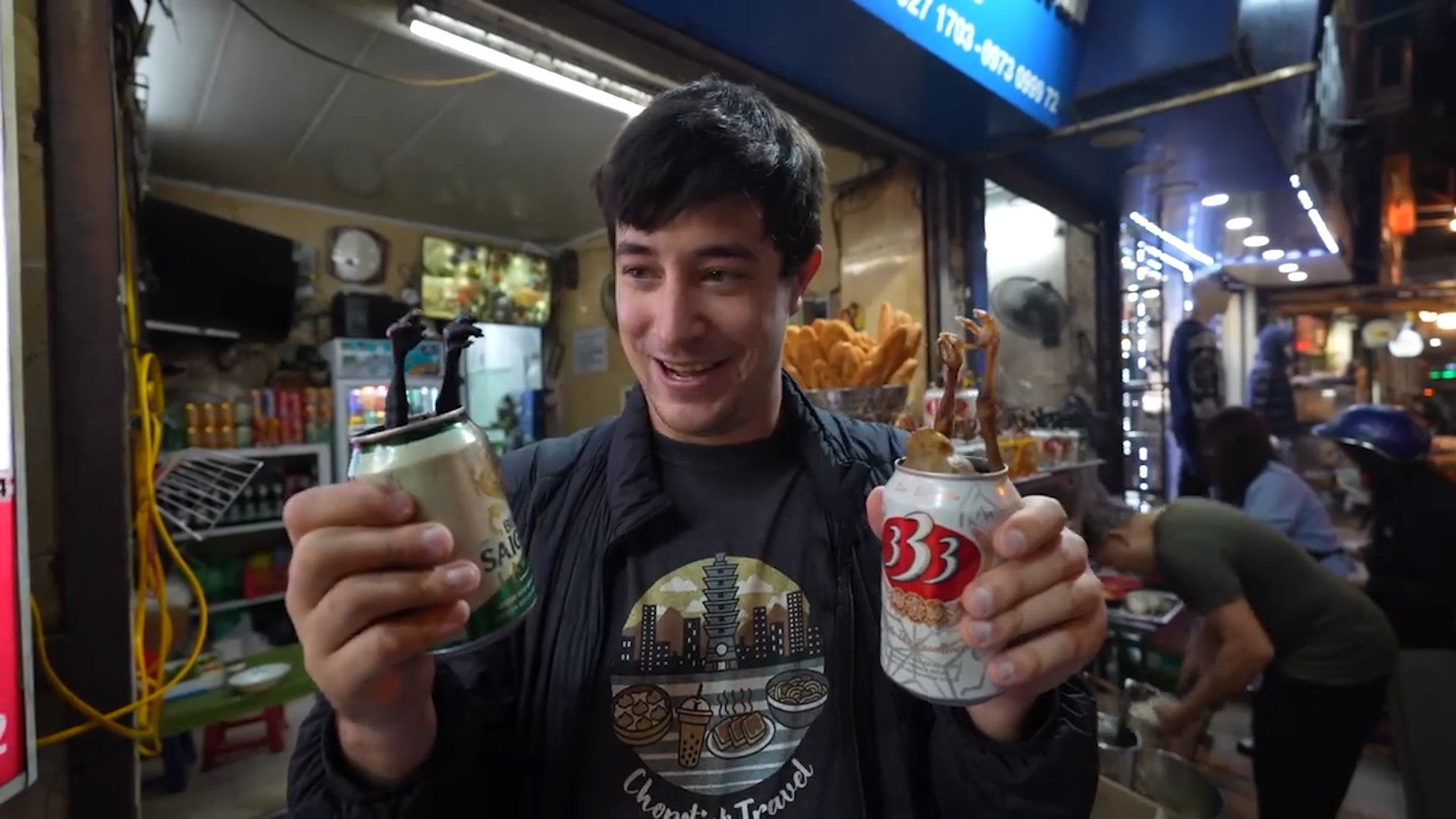 | Luke Martin ngạc nhiên về món gà tần lon bia tại Hà Nội. Nguồn video: Luke Martin |