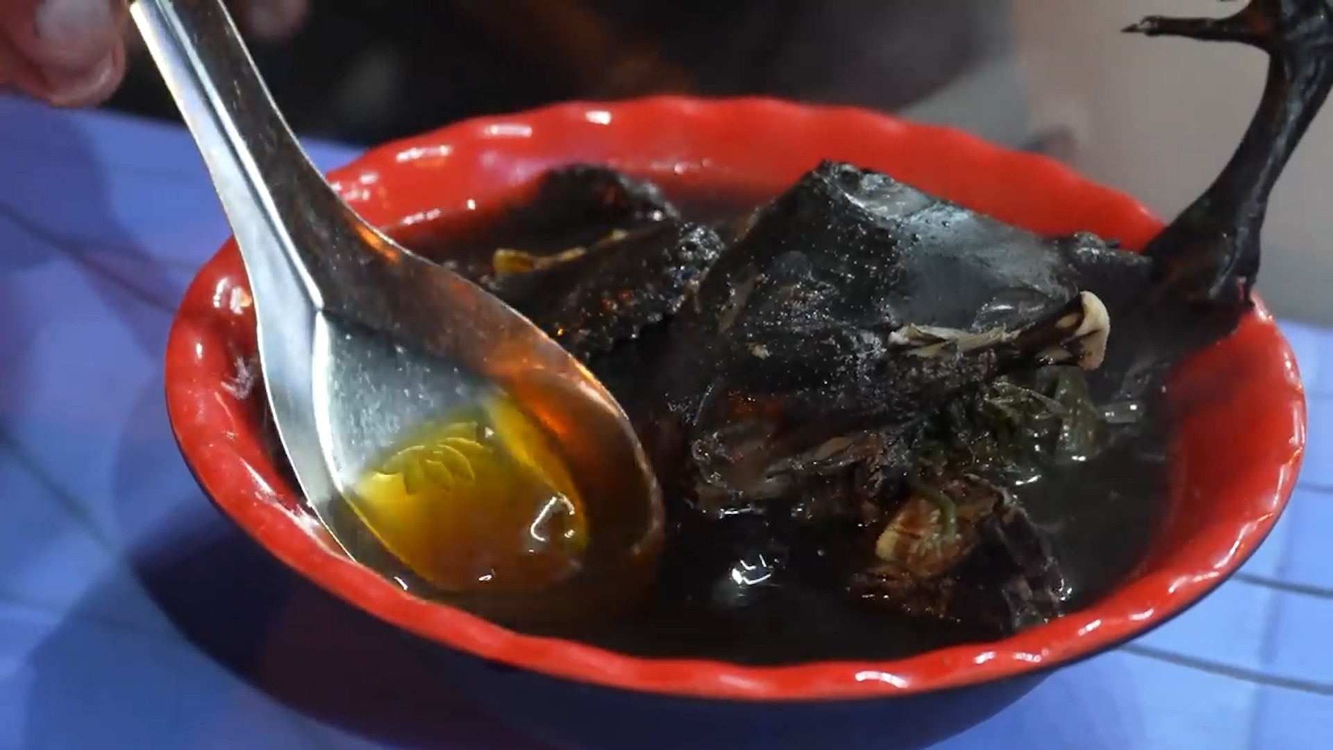 Món ăn khiến Martin ngạc nhiên nhất là những lon gà tần. Anh gọi đây là món ăn "điên rồ", "chưa từng thấy bao giờ". Nam du khách tò mò khi thấy những đôi chân tí hon của chim bồ câu và gà đen thò ta khỏi vỏ lon. Bên trong lon là một loại súp hương vị thảo dược độc đáo, bốc khói nghi ngút.