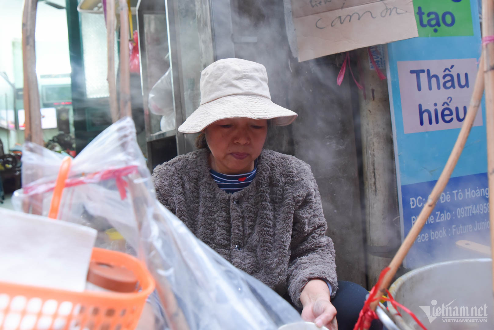 Chia sẻ được vài câu, bà Vân lại xắn tay lên thoăn thoắt múc chè. Cứ khoảng 20 phút, một nồi bánh trôi đã hết sạch. Người con dâu bà Vân nhanh chóng về nhà lấy thêm bánh để bổ sung. 1000 viên bánh được chia thành 5-7 nồi.