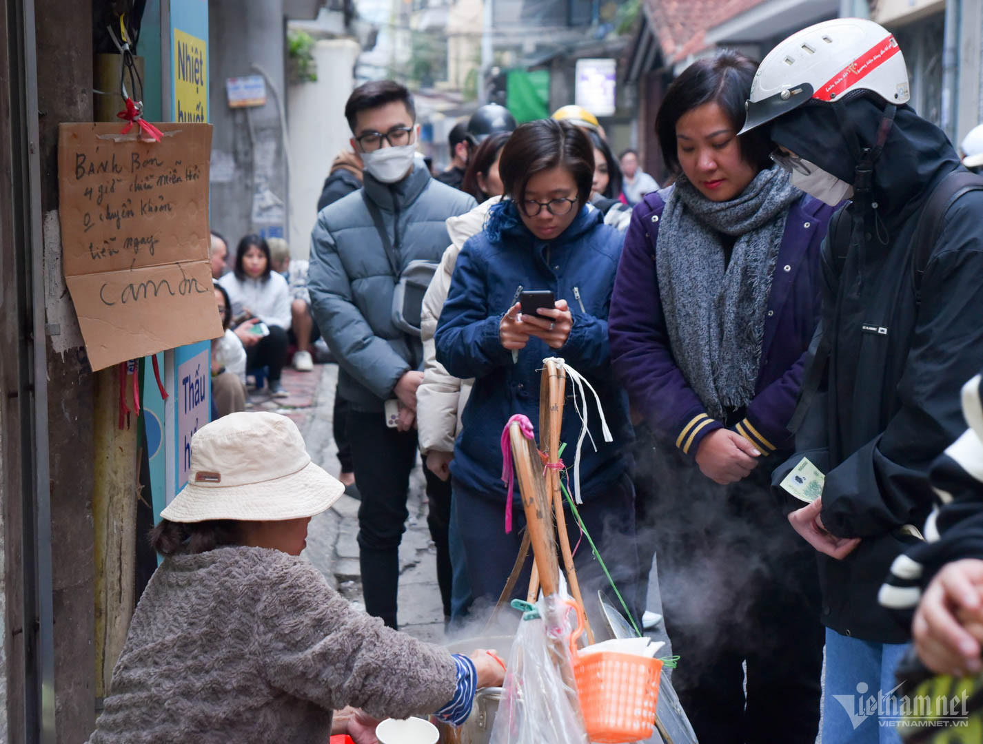 Trường Đăng (25 tuổi, quê Hà Nam) đi khá xa tới quán và phải xếp hàng gần 30 phút giữa thời tiết đầu đông. "Xếp hàng lâu nhưng mình thấy cũng bình thường thôi, không khó chịu, bực bội gì. Muốn ăn ngon thì đứng một chút cũng xứng đáng. Có những người xếp hàng cả tiếng mà đến lượt thì hết bánh người ta cũng vui vẻ đi về thôi”, Đăng cho hay.