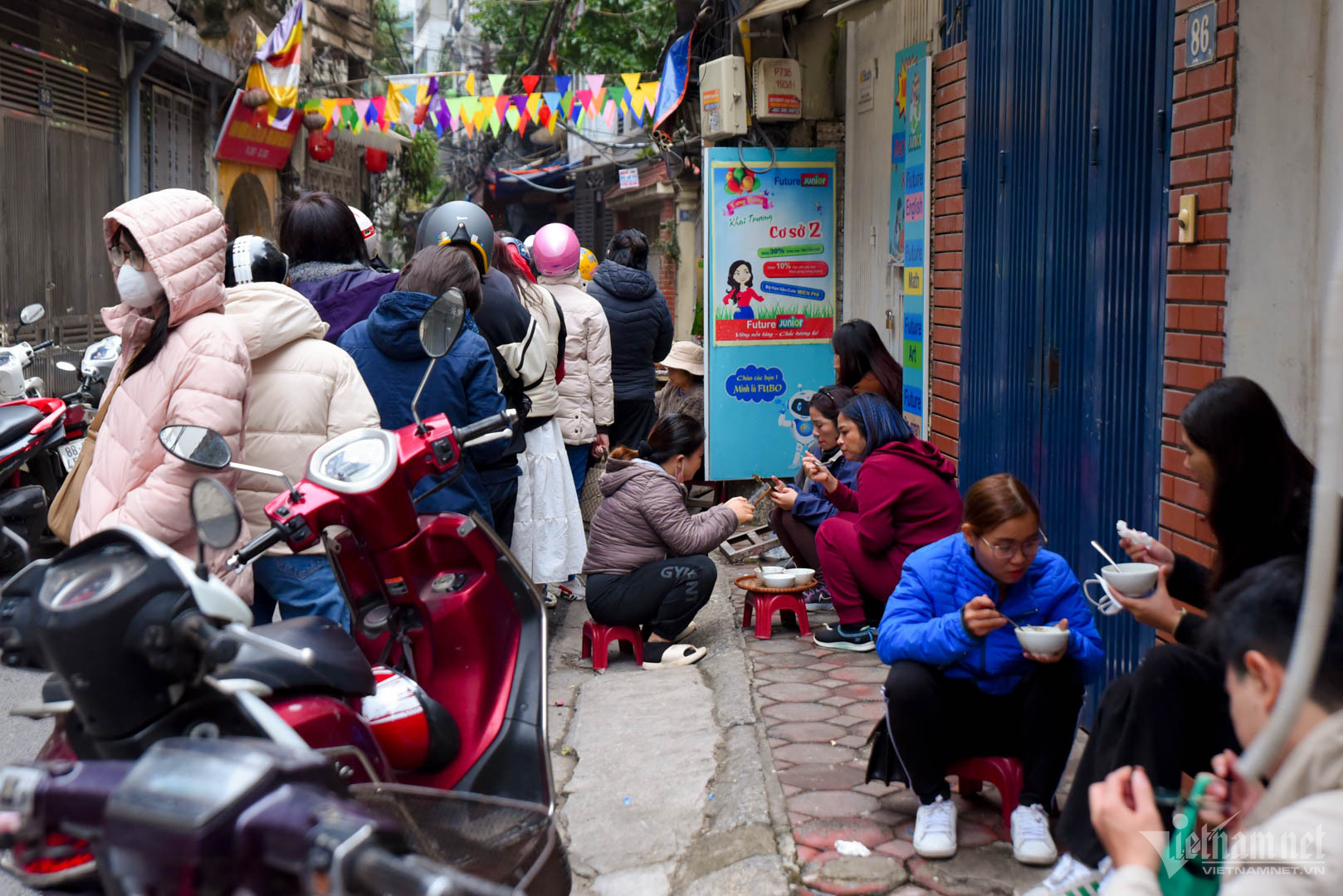 "Mùa đông thì gánh bánh trôi này ngày nào cũng nườm nượp khách như thế. Khách ngồi ăn kín vỉa hè, xếp hàng dài 5-7m, xe dựng dọc hai bên đường, người này ra người khác vào nối đuôi", một người dân tại đây cho biết.