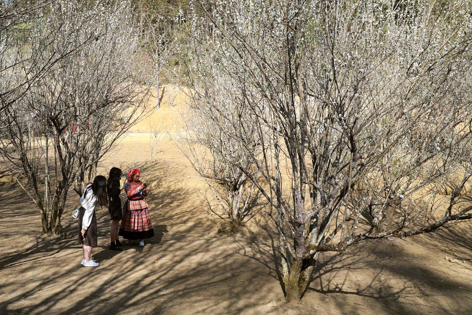 Hoa mận phủ trắng cao nguyên Bắc Hà (tỉnh Lào Cai) đang thu hút nhiều du khách ghé thăm.